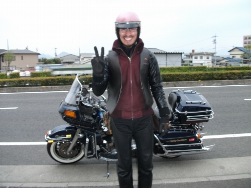 私マツシタは土曜昼出発し高速を一人ひたすら走る。ミーティングに向かっているらしきバイクを広島にてやっと1台発見、香川からのまっちゃん。