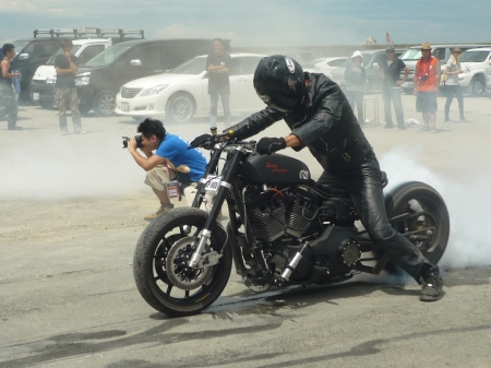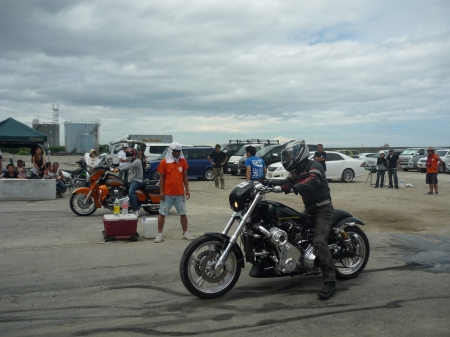 (STRANGE MOTORCYCLEのオーナーは、さぬきBMTGのエクストリーム出演アスファルトダンサーのタクさんです)