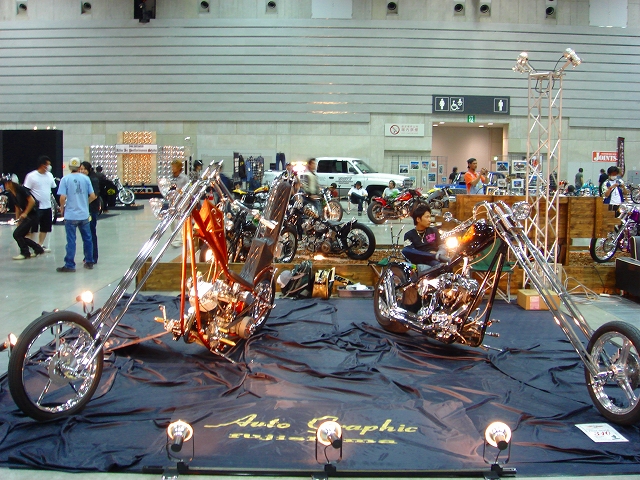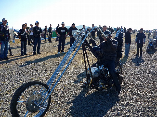 Bill Wall氏(中央)と、FXSTCオーナー岡野氏(右端)・ロングフォークチョッパーオーナー松岡氏(左端)とともに.。