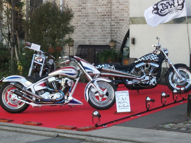 | ビルウォールは1965年、カリフォルニア州マリブに生まれ、1985年よりビルウォールレザー(BWL)として最高のレザー、高品位な貴金属と宝石のみを使いデザインから製作を携わり、世界中のエグゼクティブから愛されている。 ビルウォール氏の歴史は、ハーレーダビッドソンを愛するバイカーとしての彼自身の生き方なくしては語れない。(詳しくは【Bill Wall Leather】オフィシャルサイト【HISTORY】ページにて) そこで! アイアイイスズさんからのご依頼で、イベント当日オートグラフィックフジシマカスタムバイクを5台展示させていただくことになりました! 展示車両は、 コスマン、ロングフォークチョッパー、’88FXR、’98FXSTC、 FLSTF(未公開スペシャルカスタム) の5台の予定です。 |