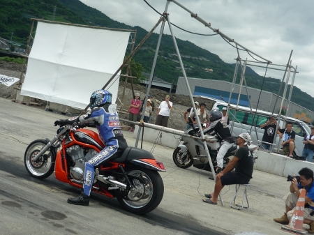 (STRANGE MOTORCYCLEのオーナーは、さぬきBMTGのエクストリーム出演アスファルトダンサーのタクさんです)