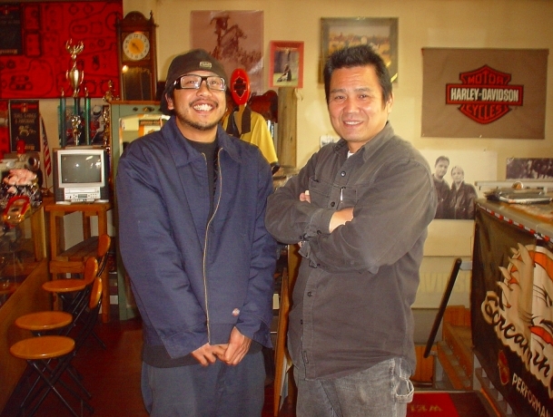 ▼ご自宅の前でオーナー正木さん(左)と息子さん