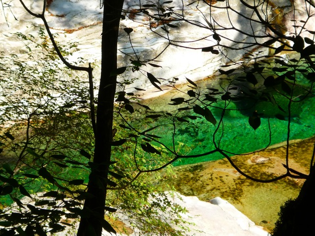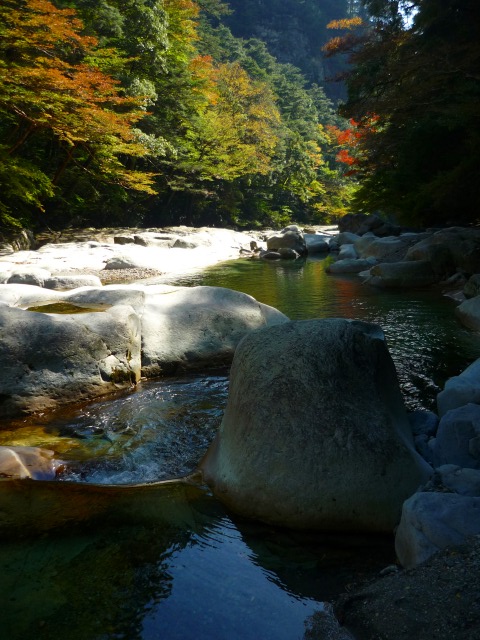 水の透明感と青い色が何とも美しい面河渓。